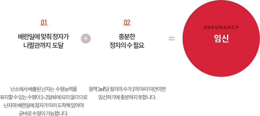 임신은 이처럼 정교한 수정의 과정을 통해 이루어지는데 다음의 2가지 조건이 잘 마련된 경우라야 합니다.