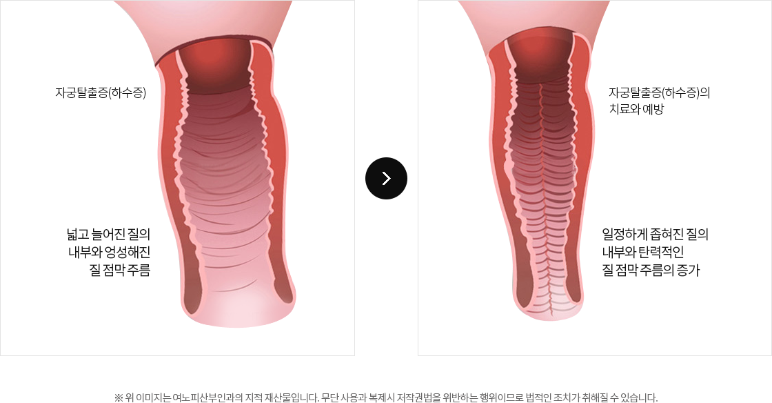 늘어난 질을 레이저를 이용하여 안전하게 질 점막을 박리한 후 질괄약근을 충분히 노출 및 복원하여 질 내부의 탄력이 높고