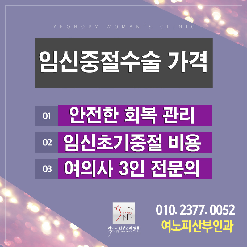임신중절수술 이후 안전하고 빠른 회복을 위한 선택. 저희 명동역 여노피산부인과에서는 여의사 전문의의 오랜 산부인과 진료 경험을 토대로 꼼꼼한 상담과 회복관리를 통해 여의사의 당일상담 당일수술 및 빠른 일상 복귀를 가능하게 합니다.